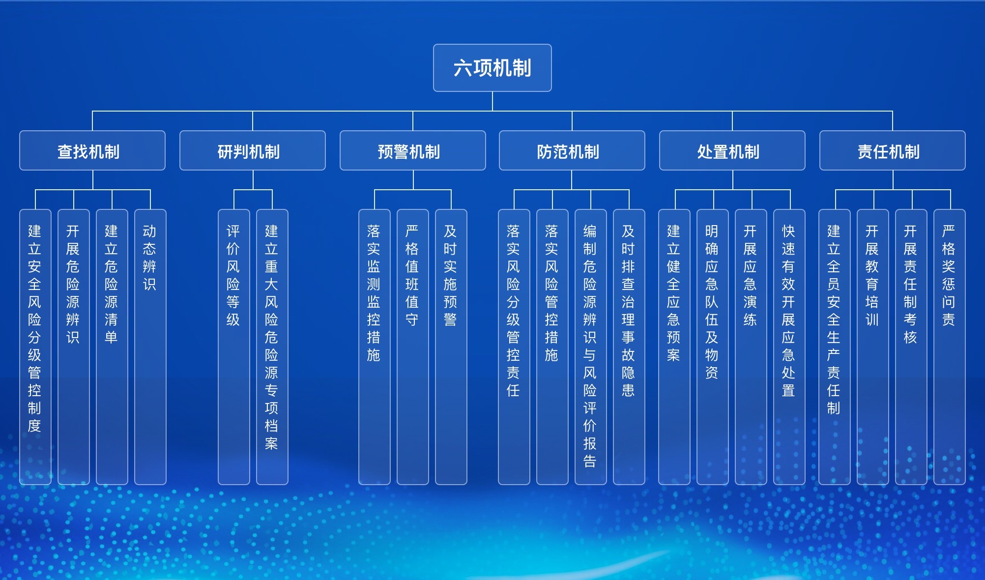 "六項機製”構建工作的主要內(nei) 容包括:查找危險源、研判風險分級、預警監測叫應、落實防控措施、及時化解風險、落實管控責任。其中,地方各級水仁政主管部門、流域管理機構對管轄範圍內(nei) 水利生產(chan) 經營單位“六項村製”構建負有組織指導和監督管理責任,各類水利生產(chan) 經營單位對本單位“六項機製”構建負有主體(ti) 責任。