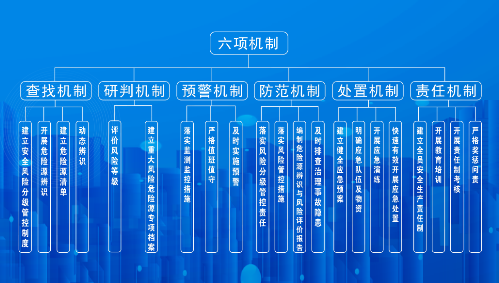 “六項機製”構建工作的主要內(nei) 容包括:查找危險源、研判風險分級、預警監測叫應、落實防控措施、及時化解風險、落實管控責任。其中,地方各級水行政主管部門、流域管理機構對管轄範圍內(nei) 水利生產(chan) 經營單位“六項機製”構建負有組織指導和監督管理責任,各類水利生產(chan) 經營單位對本單位“六項機製”構建負有主體(ti) 責任。
